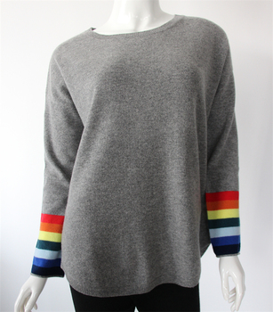 Wholesale Ladies Knitwears Stripe Cuff Crew Neck Pure Cashmere Jumper Knitted Women Casual Sweater