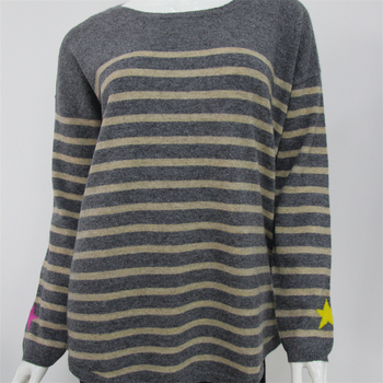 נשים שטוחות סרוגים 12gg נשים 100% קשמיר כוכב סוודר פסים סרוג הסיטונאי